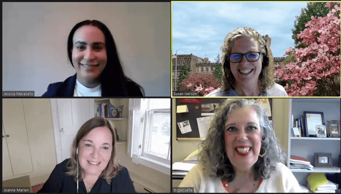Dr. Bigaouette currently serves as Associate Dean at Fordham University’s School of Professional and Continuing Studies. She reflected fondly on the truly meaningful impact on the Manhattanville community through her dedication, leadership, and care for students, families, and educators. She embodies the scholar-practitioner model by thoughtfully connecting research to real-world practice, always centering people and communities in her work. In addition to serving as a current adjunct with the doctoral program, she also serves on dissertation committees. She is pictured below at the final defense of Dr. Jessica Maracallo, HigherEd cohort 5.